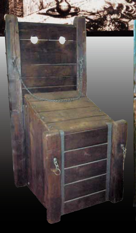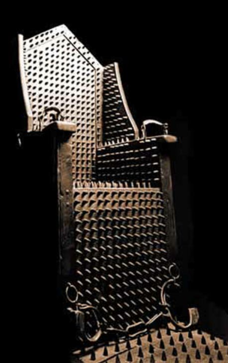 这些审讯椅是审讯员使用的基本刑具。在现代社会中,它的很多改进版依然在使用,而且通过使用电力使其更具效力。
