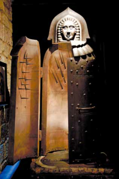 酷刑历史中记载的一些刑具,是以人体为模型制成的容器,有两扇门,内壁布满铁钉,可以把受害者装进去,刺穿身体。其中最著名的就是常被称为“纽伦堡的铁处女”的刑具,据说它在1944年的空袭中被摧毁。
