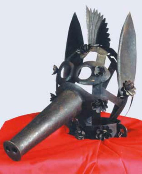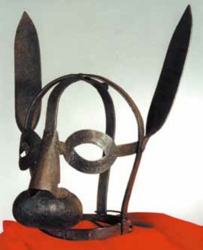右上部是一个笼头,可以作为一种公开羞辱人的束缚刑具(类似于上文提到的口钳与下文将描述的泼妇笼头)。