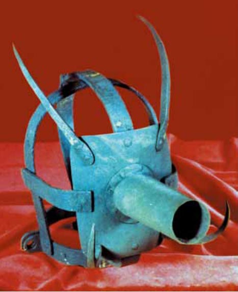上图:羞辱面具(或者更常用的称呼“口钳”)有着各式各样奇特的样式。这种刑具外观的变化部分取决于制作它们的工匠的想象力,部分受到地区差异或者犯罪类型的影响。