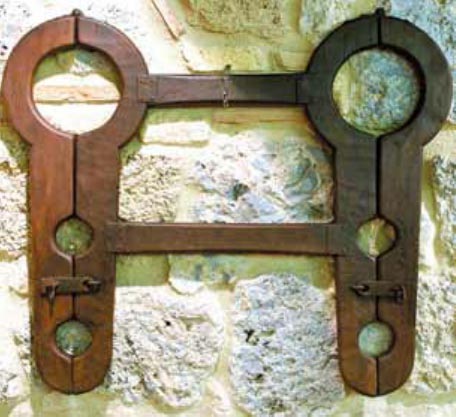 上图:这个项圈以及挂在上面的铃铛,会戴在很多被挑出来进行公开羞辱的各色人等的脖子上。无论是一个泼妇还是一个令人讨厌的行会成员,他们的脖子都会被套上这个刑具,然后游街示众,同时受到愤怒民众的鞭笞、殴打或者其他折磨。