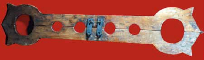 “泼妇提琴枷”或者“颈部提琴枷”,是一种旨在羞辱和折磨人的一种刑具。头会套在较大的孔里,手腕卡在两个较小的孔中。这样受害者很容易被牵着和拖拉。有些这种样式的刑具是用铁链把两个琴脖子连在一块,还有其他的是用一根结实的木条把两个提琴枷的琴脖子接在一块,构成一根长的颈手枷。