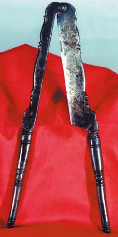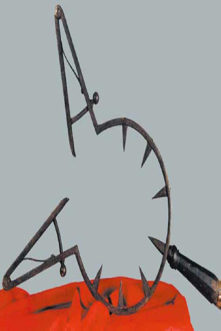 上图:这个简单而精巧的刑具用于残害受刑者的肢体。它可以切割舌头、嘴唇、乳头或者手指关节等。这一制作精良的工具的最早用途,可能是在犹太人割礼仪式中由割礼执行人所使用。
