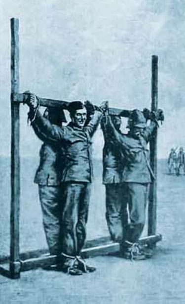 最常用的战地刑罚是让罪犯戴上镣铐,然后锁在一个牢固的物体上,通常是大炮的车轮或者其他类似之物。禁锢一般是一天两个小时,最多也就是4天中有3天,或死刑前被禁锢21天。这一刑罚常被称作“十字架刑”,而且具有羞辱性,因此被很多士兵看作是不公正的。
