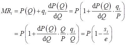 (2)古诺竞争下,厂商利润最大化的边际条件为:MR i =MC i ,而