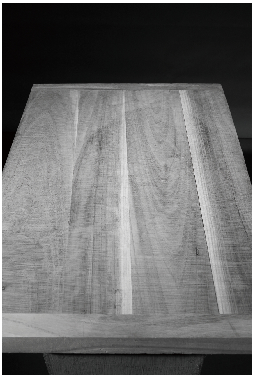 此处拍摄所用的木质底板,它的花纹线条可以视为透视线。