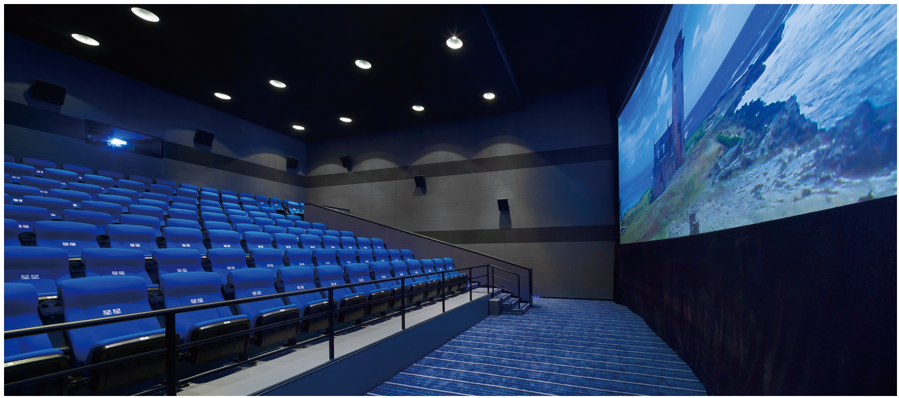 就像这张电影院内部空间的拍摄,我们并不是在记录,而是在透视的基础上去表现。