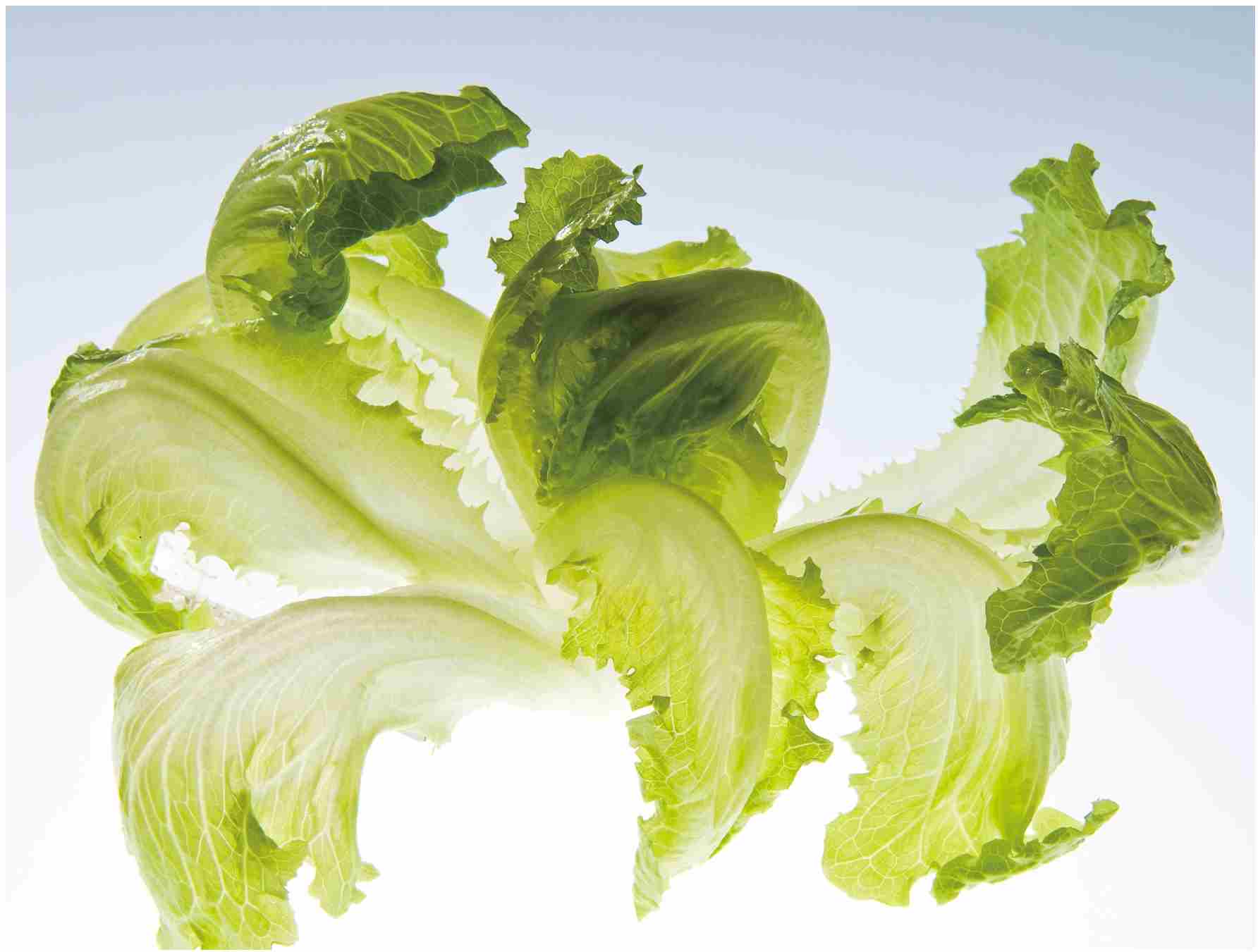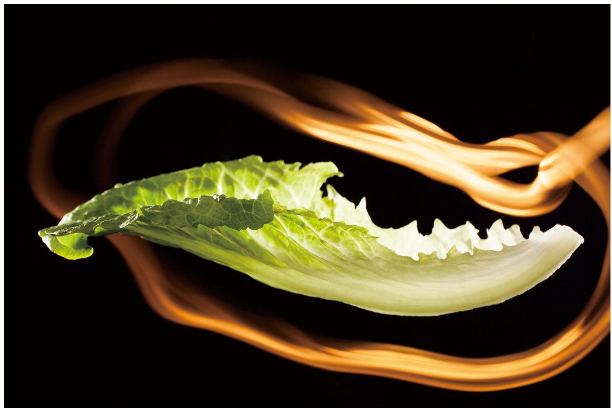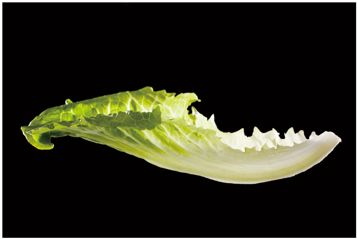 01 闪光灯的光质是密集强烈的,色温达5 400~5 600K,能够准确地还原被拍摄对象(一片生菜叶子)的色彩和形态。
