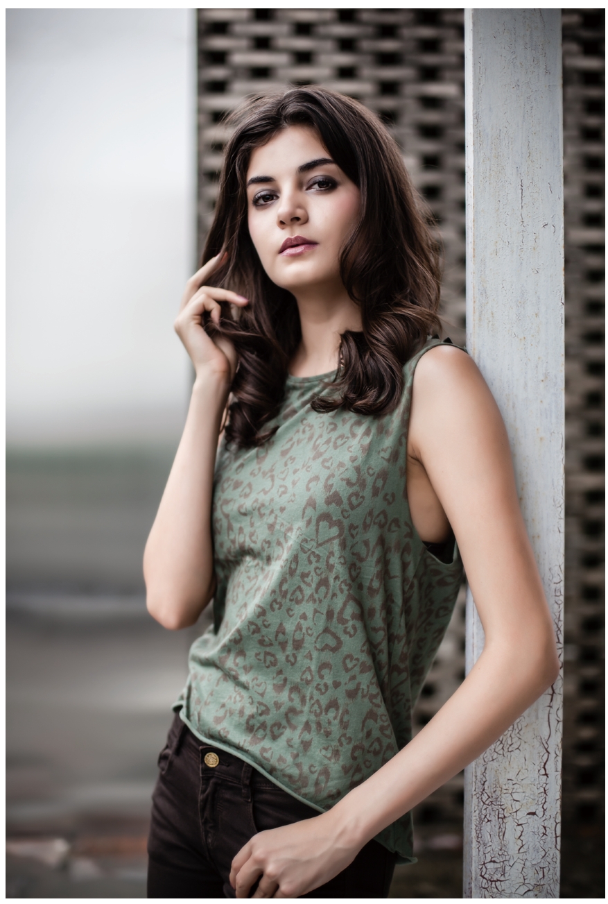 13 在室外给模特拍摄一张日常照片。南方夏天午后,大雨欲来,空气的湿度很大,光线很均匀,画面很柔和(如果想让模特的皮肤质感强烈,那就使用闪光灯吧)。
