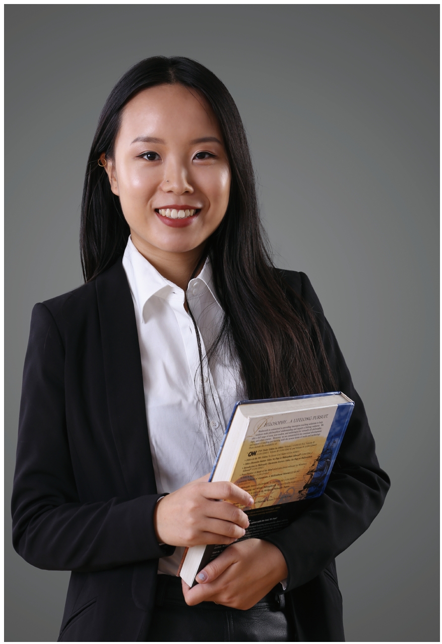 08 拍摄这张漂亮的英文老师的商务肖像照时,我用对角线对角布光方式。