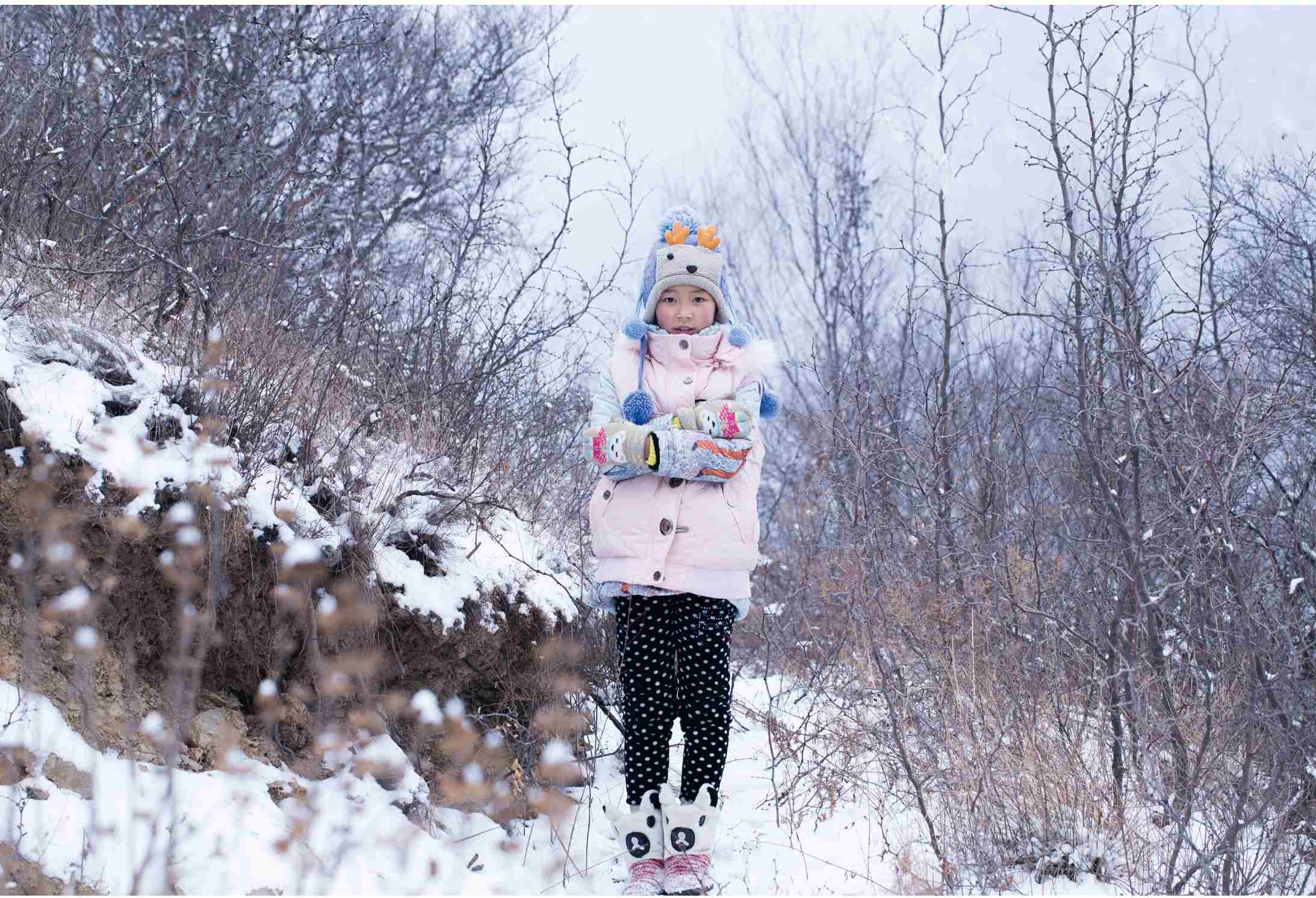 16 寒冷的冬天,拥有非常迷人的空气透视。在山间小道,为女孩刘欣雨拍摄写真。这两张照片都使用了佳能100mm f/2.8镜头,光圈f/2.8,前后走动用“脚”来取景。