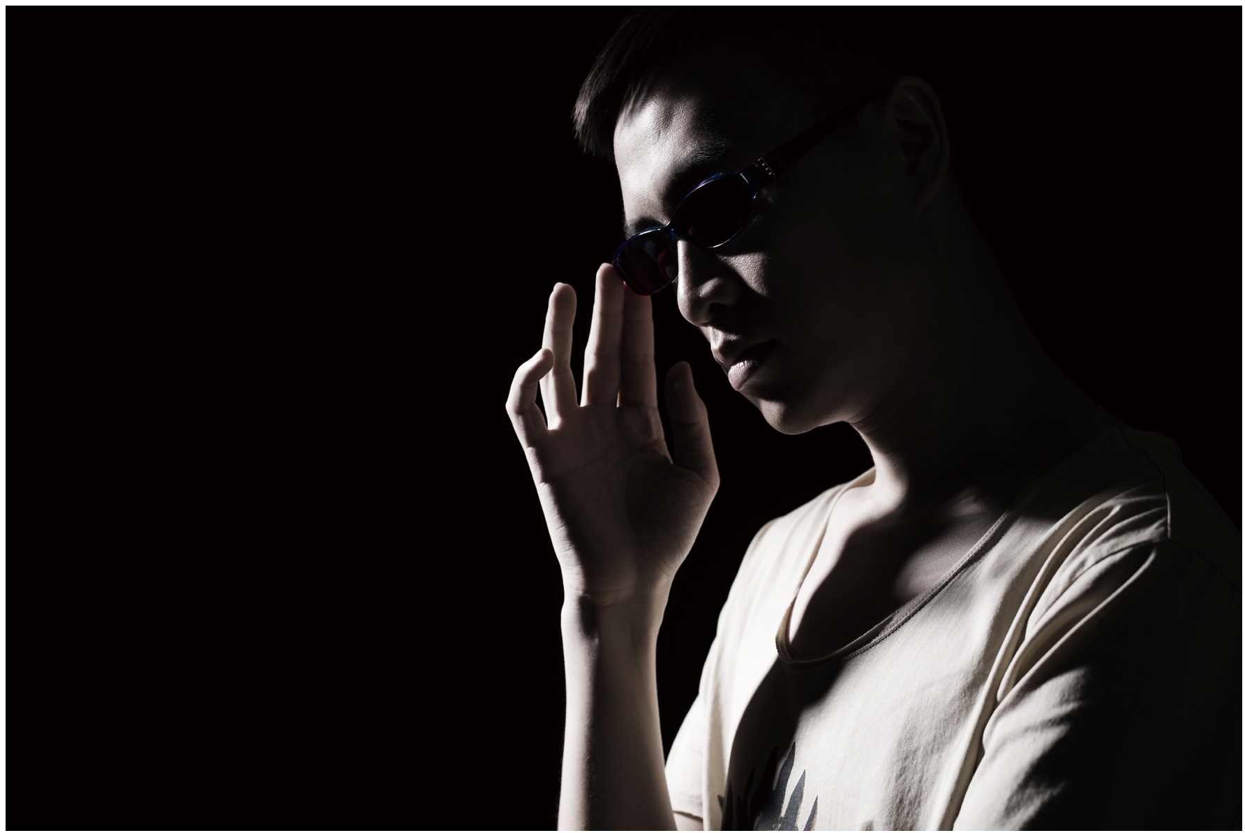 06 直接用闪光灯及其配套的标准灯罩,在逆光方向拍摄好友杨凯新的暗调照片。我直接用硬光逆光打光,什么柔光的东西都不加。