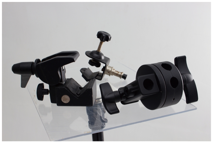 06 固定用的大力夹,在拍摄金属水龙头等比较重的静物产品时,可以很放心地固定住它们,不会掉落。它们在夹灯具、横杆、反光板时,也最常用。