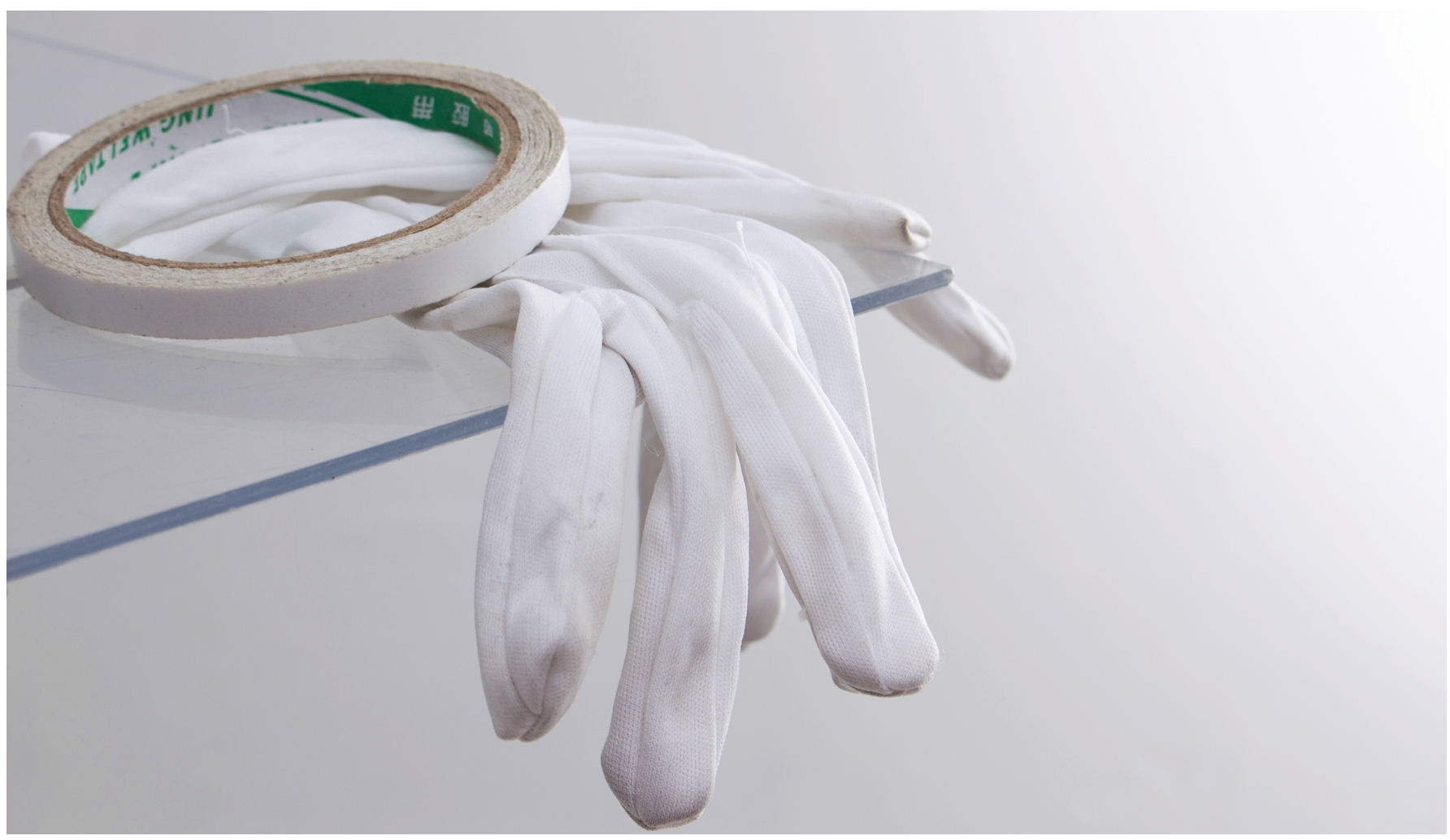 10 表面光洁的产品,不要用手直接触碰,而要戴上手套。小物件很多时候需要立起来,也要用到双面胶条。有些拍摄因为角度有特殊要求,需要倾斜并且固定,这时必须用双面胶固定了。