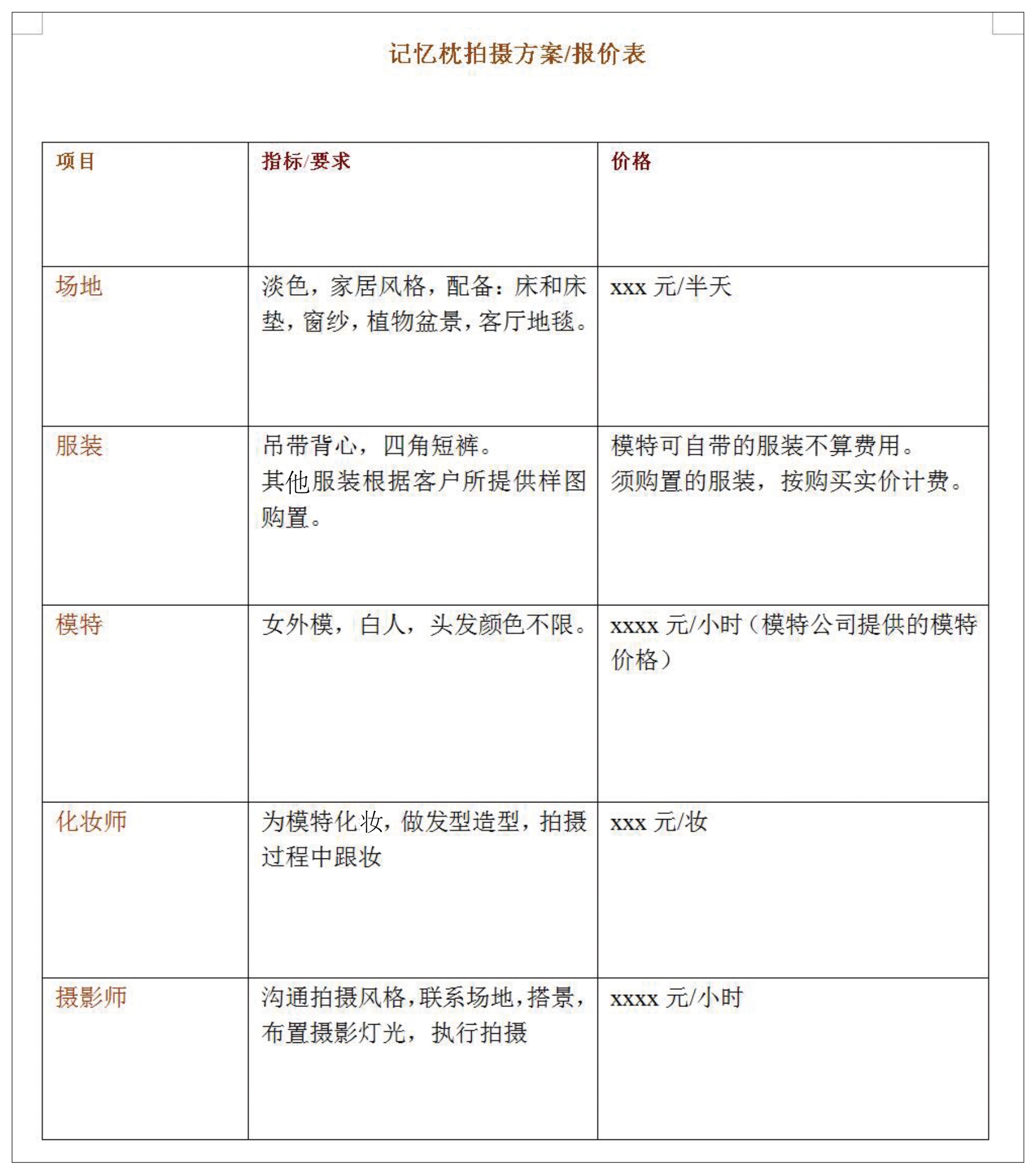 08 前期和客户朋友沟通时的拍摄方案报价表,立求简洁,一眼看懂。