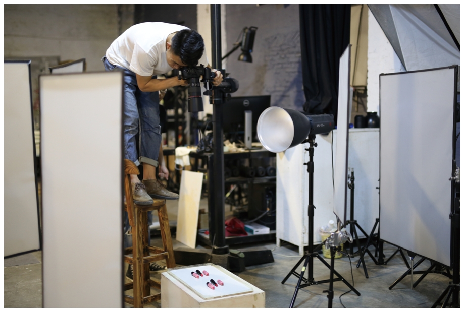04 在平时拍摄时,我会把镜头(和相机)固定在摄影臂架上,并与摄影台面形成固定角度,去拍摄一个系列的产品,从而使每张产品图的角度、透视都保持一致。