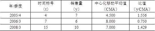 ②上表中,中心化移动平均值和比值两列共有6出空格,请计算补充这6个数据。
