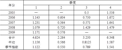 ④从销售量数据中剔除季节成分后,用一元线性模型求得销售量的线性长期趋势方程为: