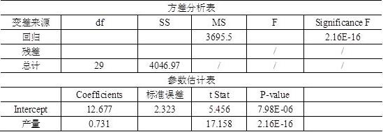 2.估计成本是回归分析在会计学上的一个重要应用。根据搜集到的产量和成本数据,利用最小二乘法可以求出关于成本和产量估计的回归方程。下面的Excel结果是给予某一制造业的产量(单位:台)和总成本(单位:万元)计算得到的。