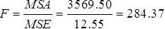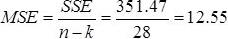 可得出:SSE=SST-SSA=4046.97-3695.50=351.47,