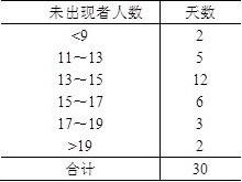 答: (1)根据上述样本,可计算出每天未出现人数的平均值为: