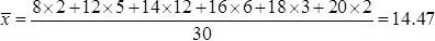 其中M i 是第i组的组中值,f i 是对应的频数。