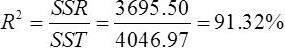 表示回归方程中,成本的变化有91.32%是由于产量的变化引起的。