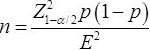 又因为p为比率估计量,有0<p<1,则有p(1-p)≤1/4,则最大所需样本量