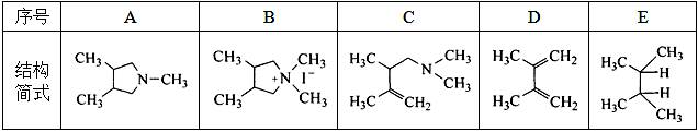 【解析】 由E的分子式及核磁共振信息可推知E为2,3-二甲基丁烷。再由E反推D的结构,结合季铵碱的合成及消除反应特点可确定A、B、C的结构。
