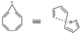 习题15-26 并环庚三烯的共轭酸非常稳定,画出并环庚三烯共轭酸最稳定的共振式,并解释其稳定的原因。