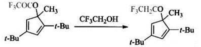 上述反应的溶剂解反应遵循S N 1反应机理,中间体正离子越稳定,反应月容易进行,反应速率也就越快。在化合物B的反应中,形成的中介正离子类似于环戊二烯酮,具有反芳香性,极其不稳定,因而速率很慢。