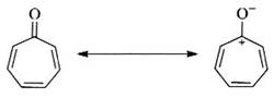 (iv)该化合物具有芳香性。环庚三烯酮可经历如下共振,达到具有芳香性的结构。