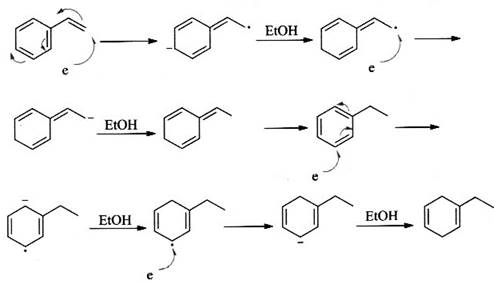 解: 碱金属钠或钾在液氨与乙醇或异丙醇、二级丁醇的混合液中,与芳香化合物反应,苯环被还原成l,4-环己二烯类化合物,这种反应叫做Birch还原。