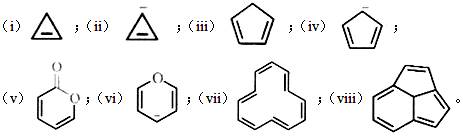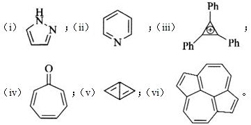 除此之外,共轭的电子数需要是4n+2个,根据共振理论,上述化合物中具有芳香性的化合物有:(i),不具有芳香性的有:(ii)、(iii)、(iv)、(v)。
