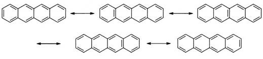 从共振式可以看出,并四苯最多含有两个完整的苯环,而在共振极限式中,有三个这样的极限式。