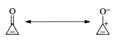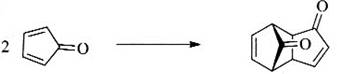 三个化合物的结构差异很大,但环丙烯酮和环庚三烯酮的共振式均具有芳香性,而环戊二烯酮的共振式具有反芳香性,非常不稳定。因此容易发生二聚。环戊二烯酮二聚的反应式为: