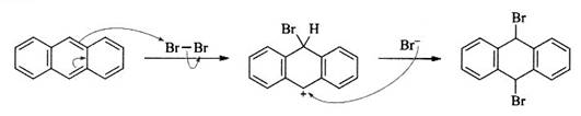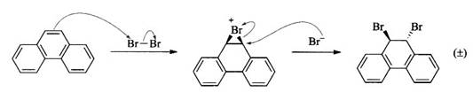 习题15-52 蒽与菲在CCl 4 中可以与溴发生加成反应。写出这两个转化的反应机理,并说明反应为何发生在中间的环上。