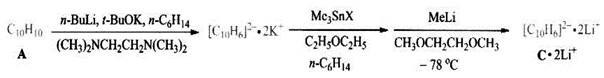 习题15-45 碳氢化合物的负离子很难制备,其双负离子更难得到。而下面这个化合物炔很容易在2倍量的n-BuLi作用下生成稳定的双负离子,与此双负离子相应的中性类似物却极不稳定。写出此双负离子和其中性类似物的结构式。