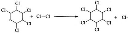 习题15-30 苯和氯气在加热、加压或阳光下反应生成1,2,3,4,5,6-六氯环己烷被认为数据自由基反应,画出此反应的转换机理。(提示:第一步反应首先破幻了苯环的芳香性,第二分子氯气的反应就会很快。)