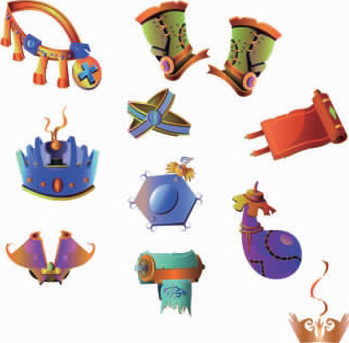 美术形象设计主要是指美术类的内容。在前期策划阶段,主要包括人物设计、场景设计、道具设计三个门类(见图2-4至图2-6),内部有美术设计的不同标准。前期策划阶段的美术工作,主要是创作人员通过一系列的图样设计,确定出整个动画项目统一的美术风格、场景的主要类别(例如,是现代都市,还是原始森林,这些都将影响着整部动画的视听语言发展)、主要角色的形象、关键性的道具设置。