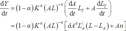 ln A =lnδ+φlnA+λlnL A ①