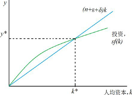 稳态时,Δk=sf(k * )-(n+g+δ)k * ,而稳态时Δk=0,所以sy * =(n+g+δ)k * 。
