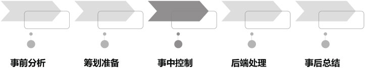 开展一场直播,背后需要解决复杂的工作,从前期的分析,到直播前的准备,再到直播过程中的应对、后台的操作,以及进货、发货等。如何才能应对这些繁杂的工作呢?总结起来,可以细分为五个步骤:事前分析、筹划准备、事中控制、后端处理、事后总结。