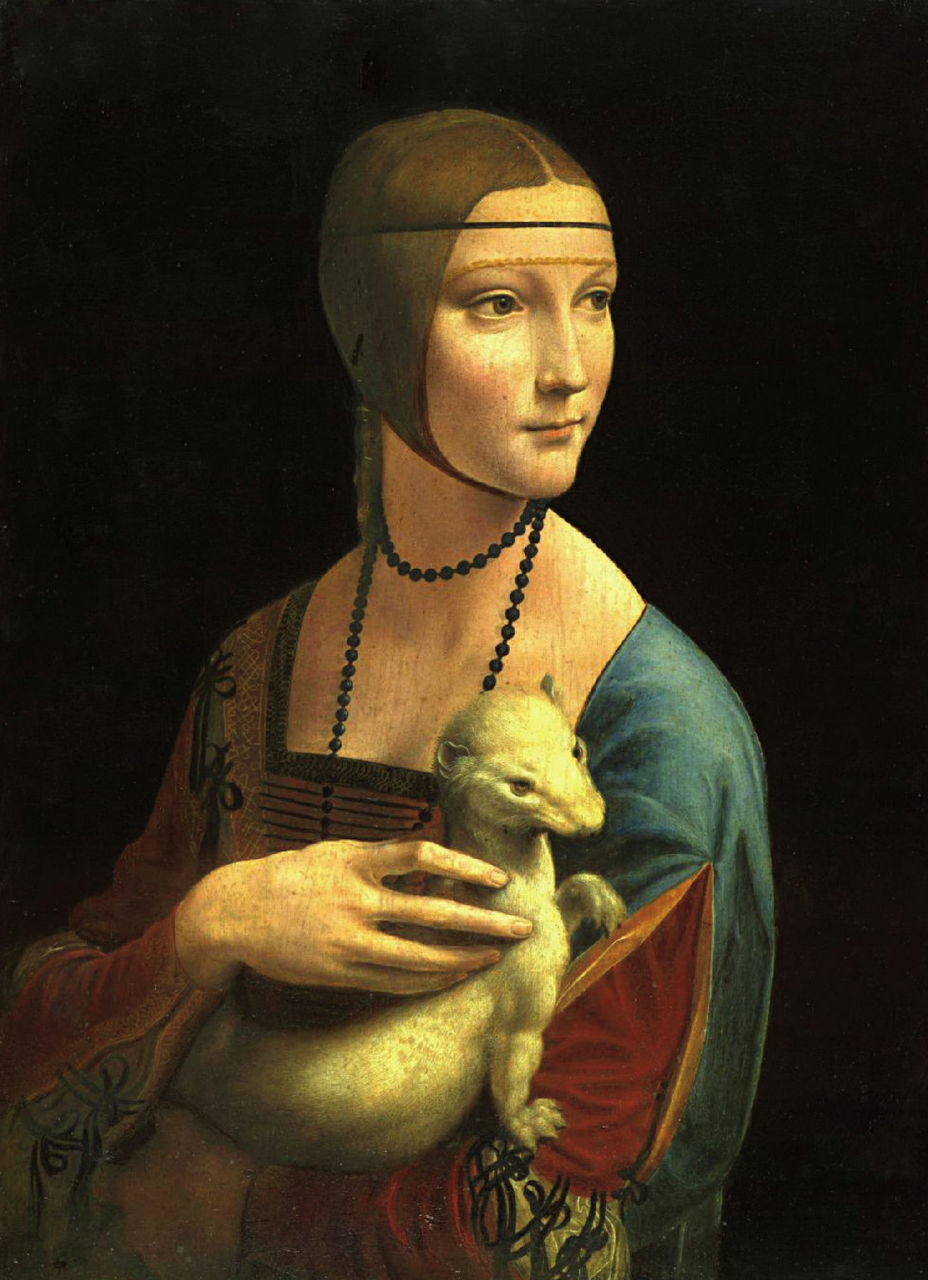 当然,“瑶公特”这副面貌,于我们已经是熟识的了。鲍梯却梨的若干人像中,也有类似的微笑。然而莱沃那的笑容另有一番细腻的、谜样的情调,使我们忘却了鲍梯却梨的《春》、维纳斯和圣母。