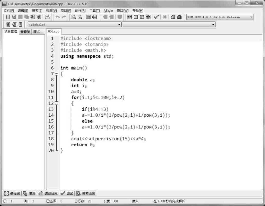 学习最初的控制台程序时,Dev C++不必像VS那样必须新建一个项目,直接建一个C/C++源程序即可。但在第9章以后使用EGE绘制图形时,也需要先新建一个项目。