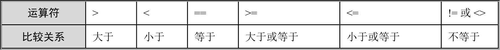C/C++中,共有6种关系运算符,除了没有<>,其余与Python中的意义和用法相同。