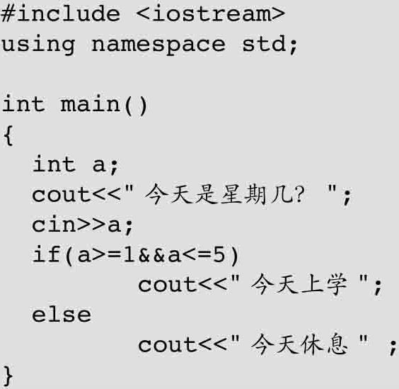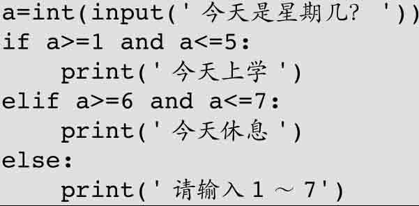 如果是1~5,输出“今天上学”,否则输出“今天休息”。