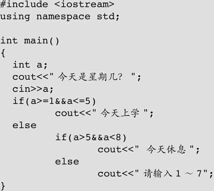 在C/C++中没有elif语句,所以这里使用了一个嵌套选择结构。
