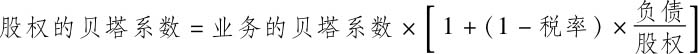 注:针对贝塔系数与负债股权比率的关系,目前最简单、使用最广泛的公式基于以下假设:债务可提供税收优势且债务的贝塔系数为0: