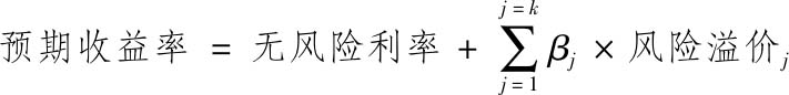 ·套利定价和多因素模型考虑了不可分散(或市场)风险的多重来源,并针对每一种风险确定相应的贝塔系数。因此,投资的预期收益率可以表述为多重贝塔系数(相对于每个市场风险因子)及因子风险溢价的函数。假设一个模型有k个因子,并以β j 和风险溢价 j 分别代表因素j的贝塔系数和风险溢价,那么,一笔投资的预期收益率可以表述为: